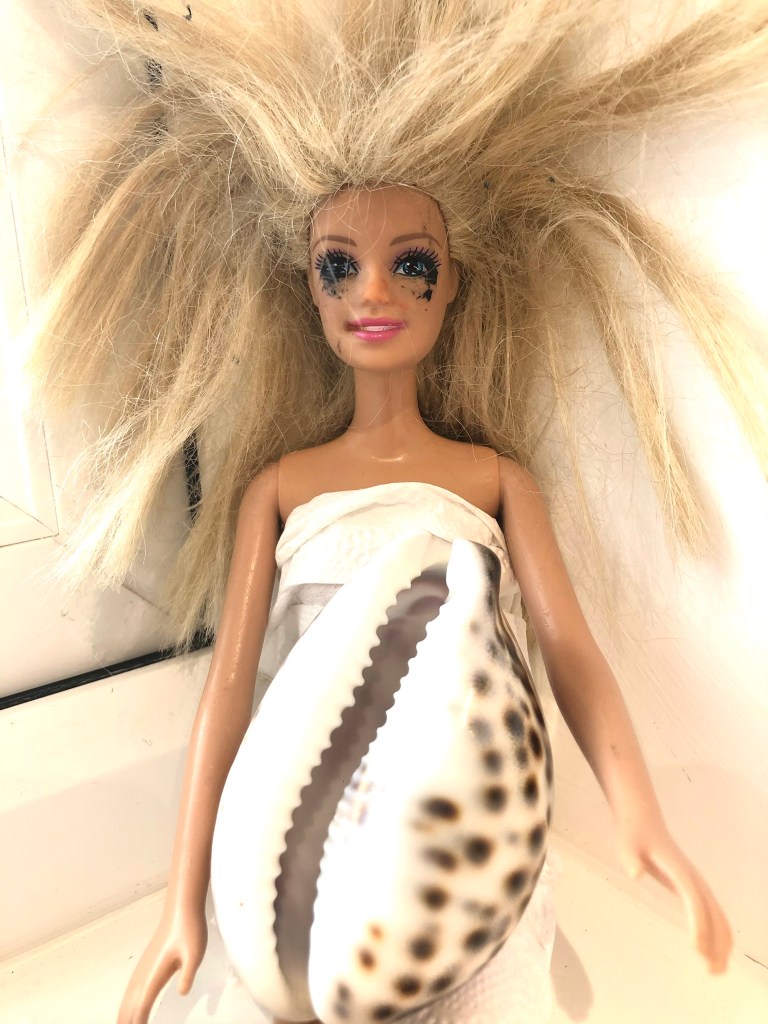 She is tossing her sun-bleached hair and there is anger in her rigid legs, held in her shoulders, and the chin I can’t see.